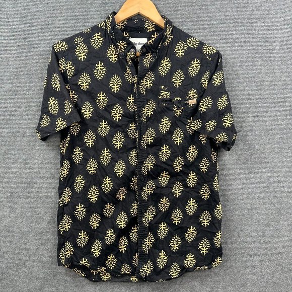Rhythm Shirts Rhythm Mens Casual Button Down Shirt Short Sleeve Black Yellow Abstract Size S Poshmark
